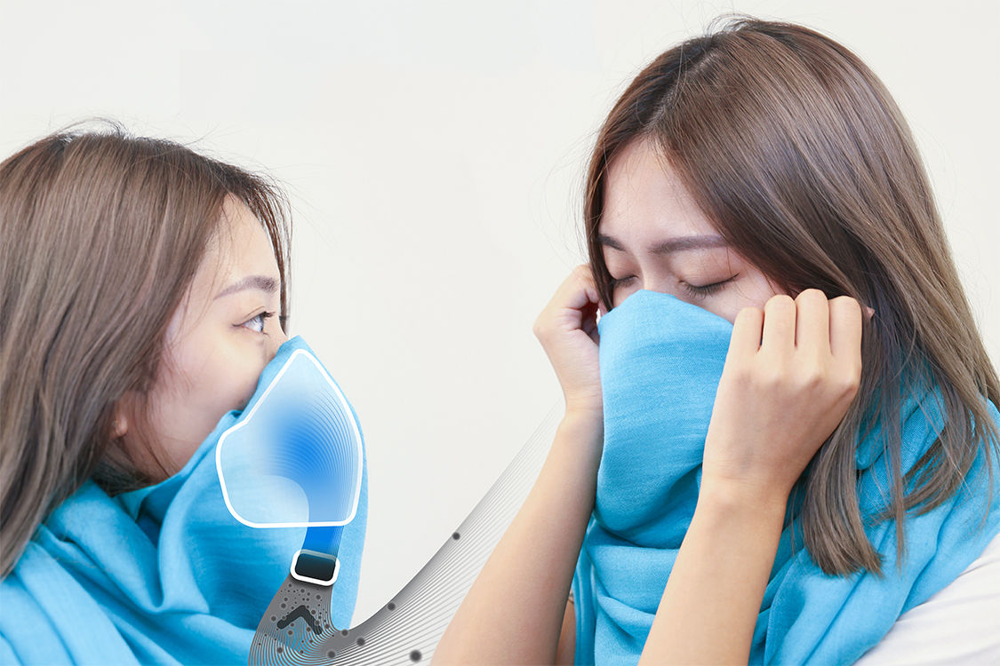 Two active filter solutions, combined with positive air flow, protect you inside a chic scarf.